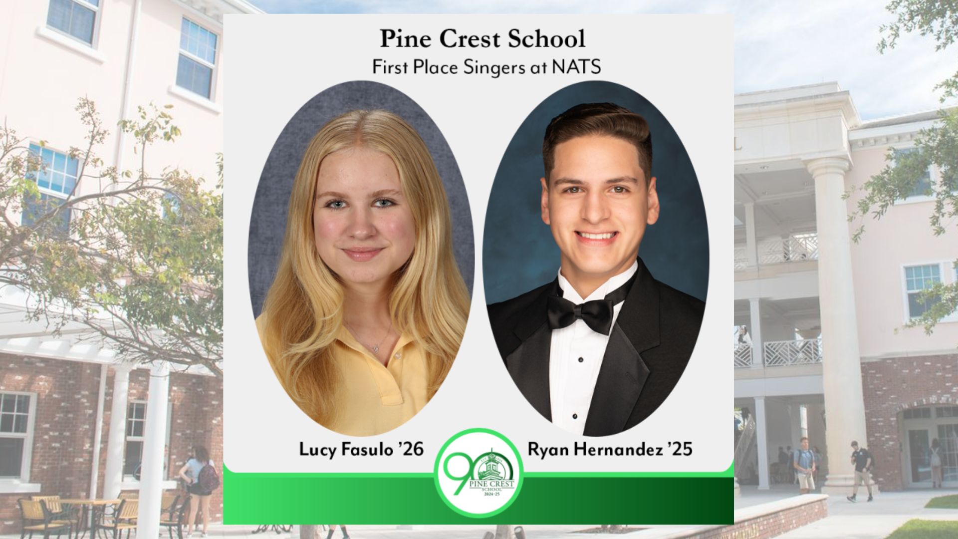 Pine Crest, Florida – Pine Crest Upper School students Ryan Hernandez ’25 and Lucy Fasulo ’26 recently made their mark in the world of vocal performance by participating in the highly regarded National Association of Teachers of Singing (NATS) auditions. Competing among talented vocalists from across the region, Ryan achieved a significant milestone by earning first place in the Upper High School Men category.