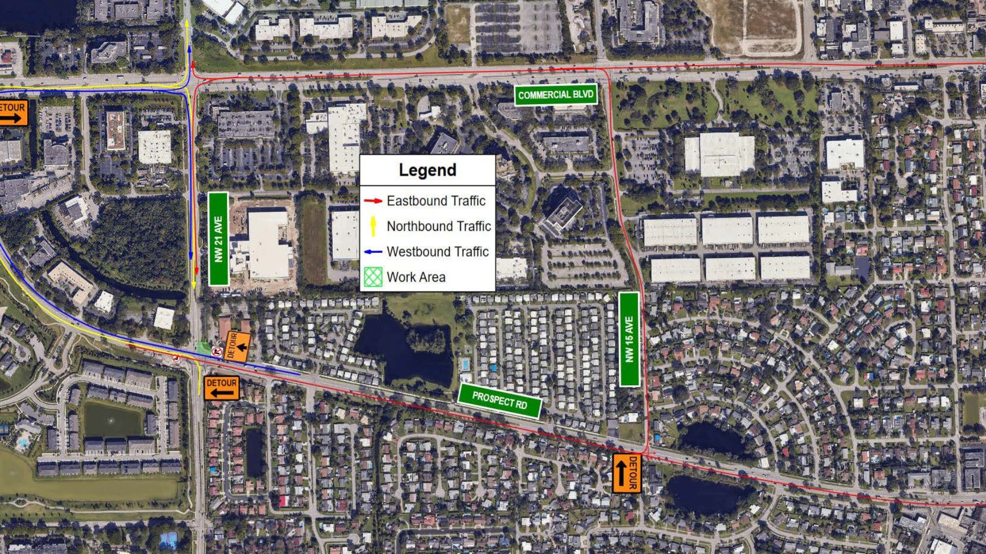• Northbound traffic should turn left onto Prospect Road, then right onto Commercial Blvd.