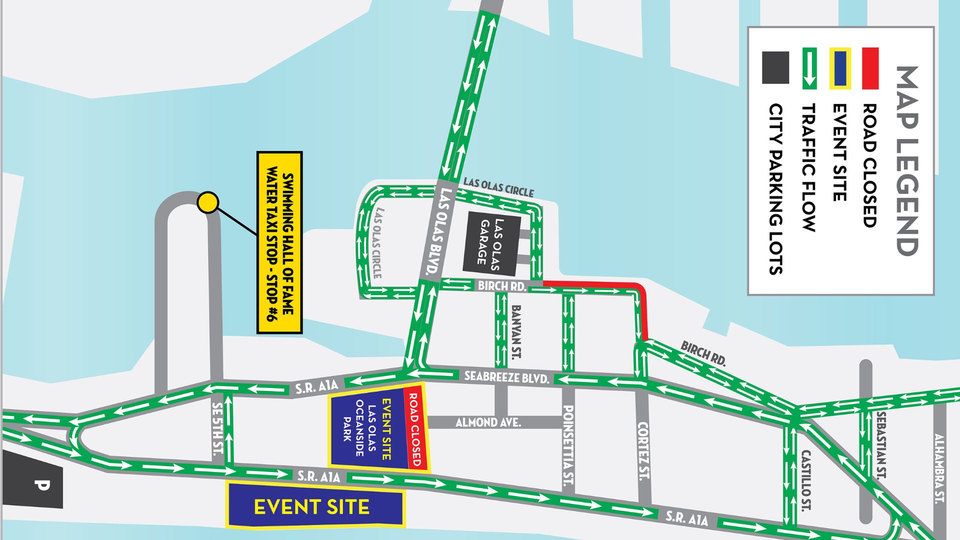 • The turnaround south of the Fort Lauderdale Aquatic Center will also be closed during these hours.
