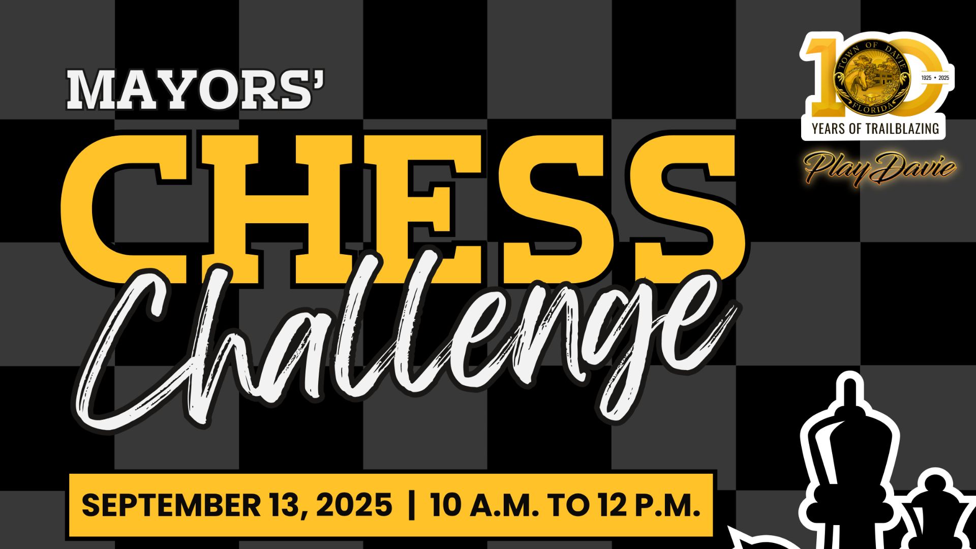 Davie, Florida – On Saturday, September 13, 2025, the Town of Davie will once again host its much-anticipated annual Mayors’ Chess Challenge, inviting residents of all ages and skill levels to come together for a morning of friendly competition and community fun. The event, which runs from 10 a.m. to 12 p.m., will be held at the Pine Island Multipurpose Center located at 3801 S. Pine Island Road. Best of all, participation is completely free.