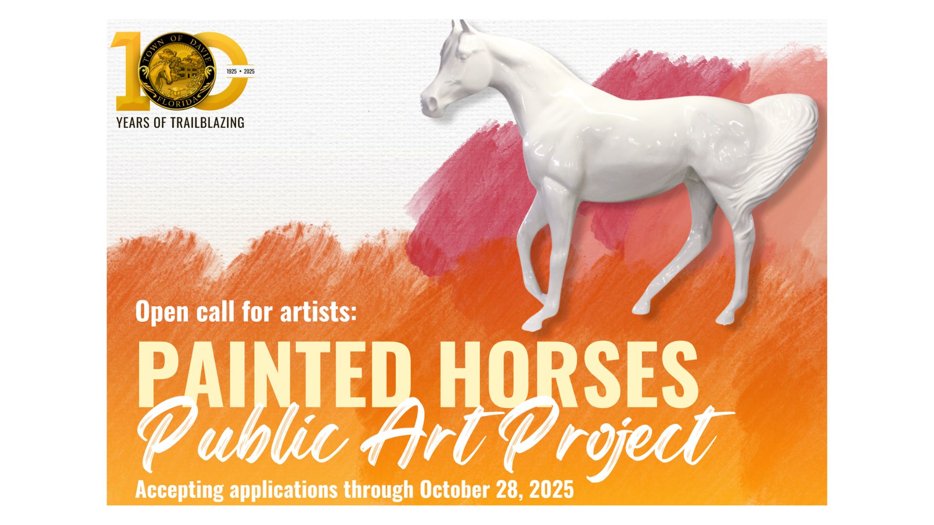 This open call represents a unique opportunity for Broward County artists to contribute to a legacy of public art, celebrate the town’s equestrian culture, and have their work permanently featured across Davie, bringing history, culture, and art together in a way that the entire community can enjoy.