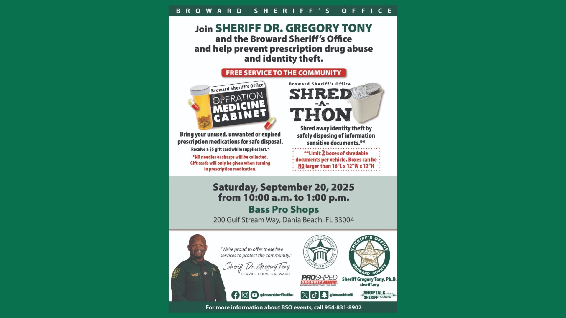 Broward Sheriff’s Office will host Operation Medicine Cabinet and Shred a Thon event in Dania Beach this Saturday