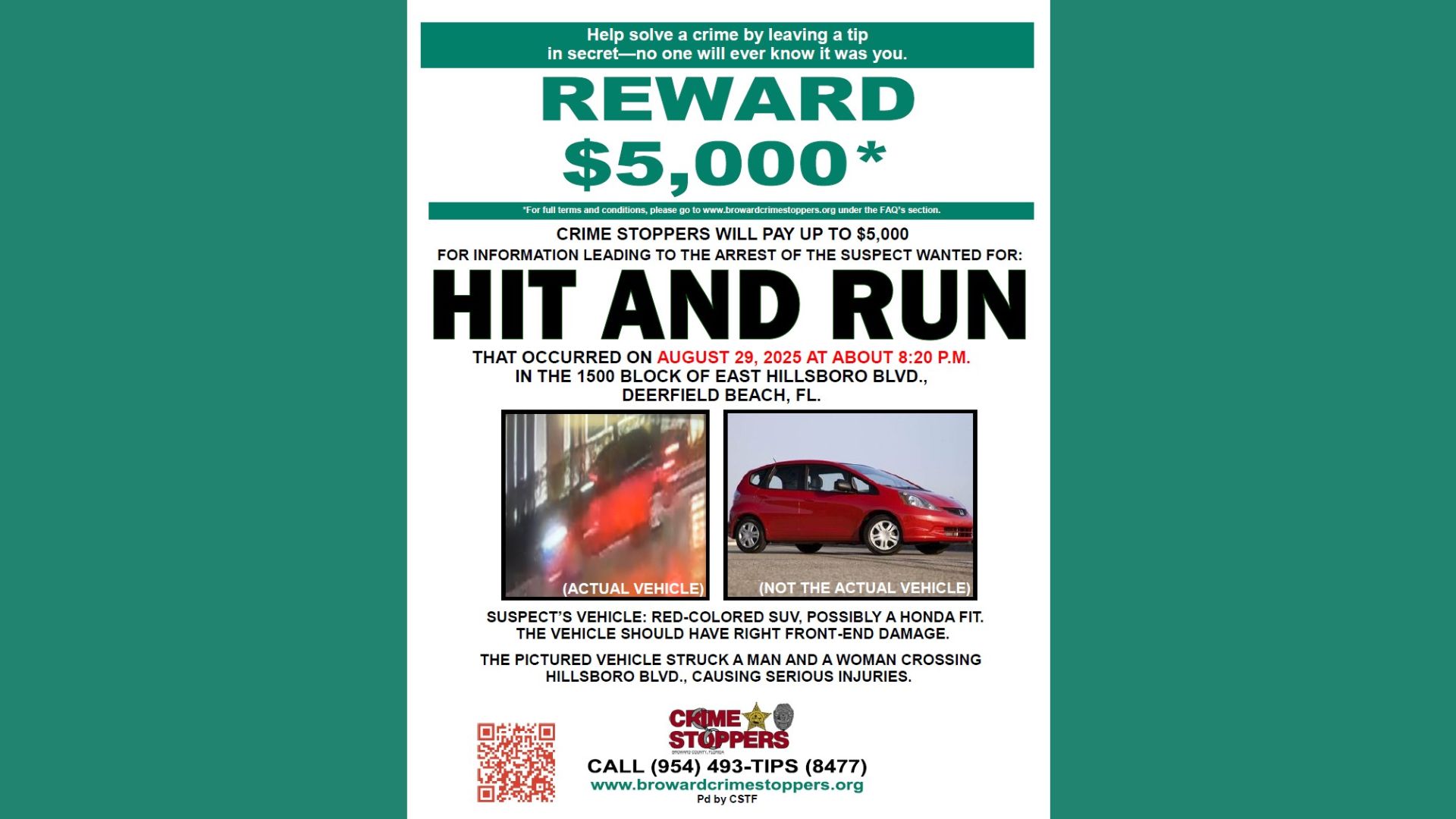 “This was a serious incident that left two people injured, and we are asking anyone with information to come forward,” said a spokesperson for the BSO Deerfield Beach Traffic Unit. “Even the smallest piece of information could help us locate the driver and bring justice to the victims.”