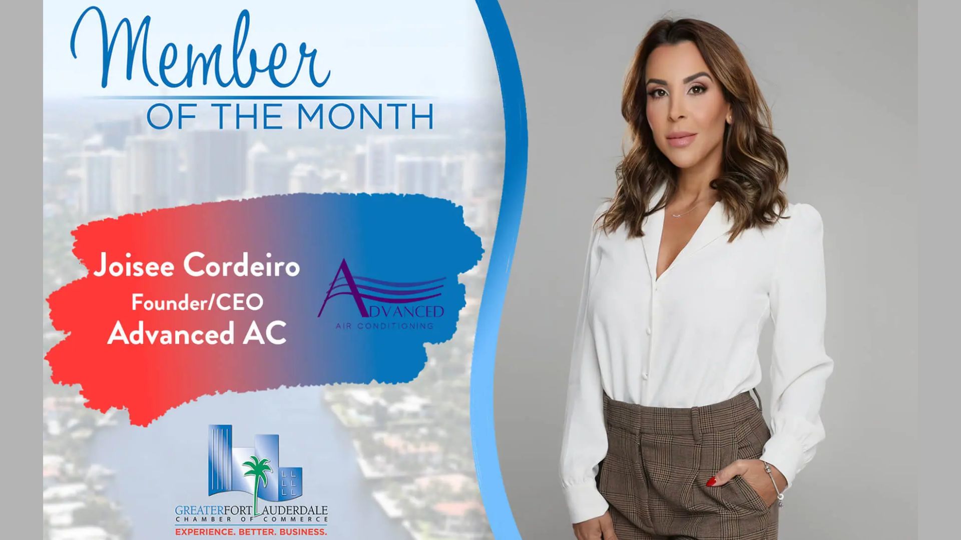 Fort Lauderdale, Florida – Joisse Cordeiro, Founder and CEO of Advanced AC, has been recognized as Member of the Month for her outstanding leadership and contributions to the HVAC industry across South Florida. With more than 17 years of experience in air conditioning and construction, Cordeiro has built a reputation for delivering high-quality, cost-effective solutions for projects of all sizes, from small residential services to large commercial installations.