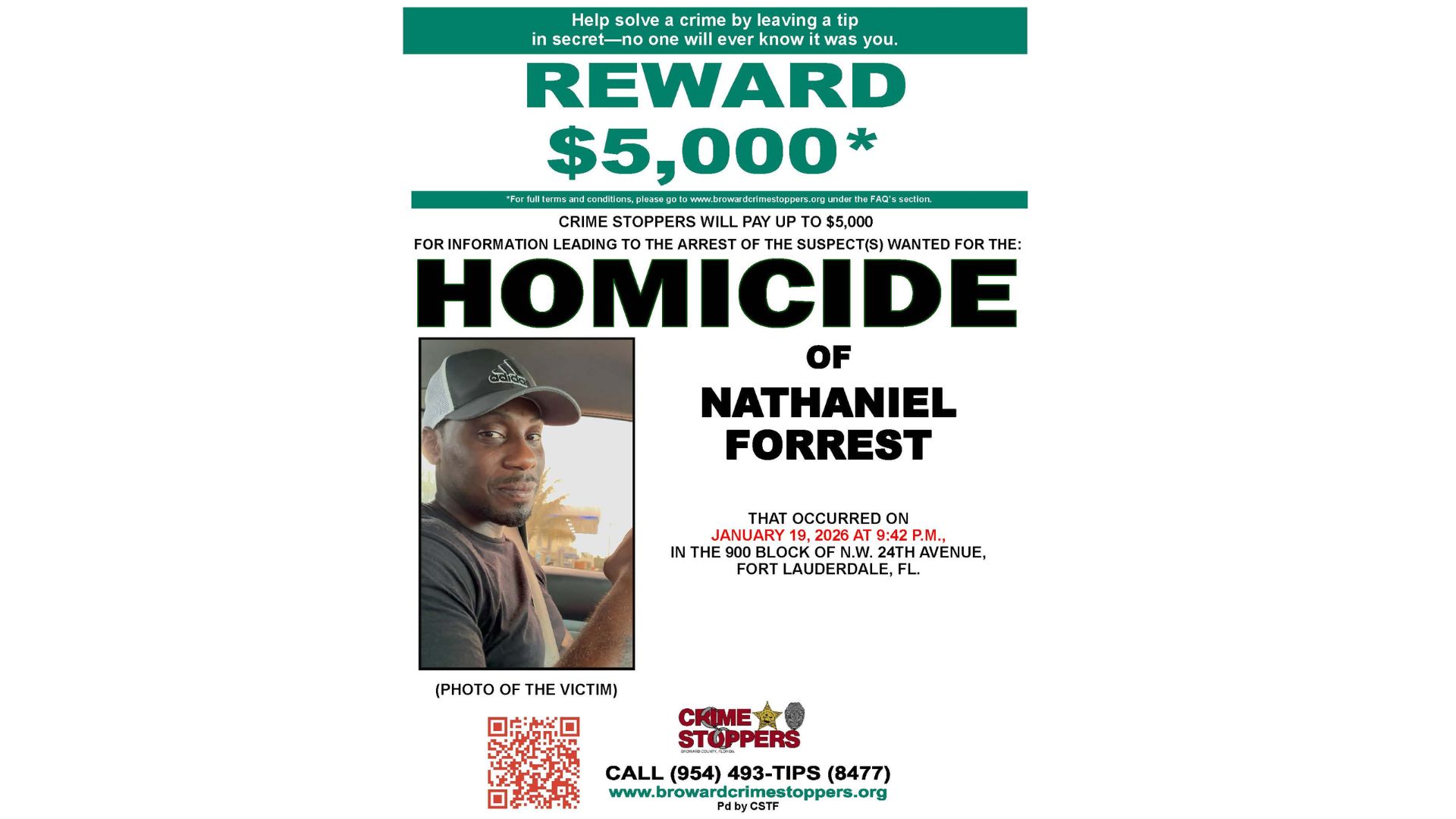 As the investigation unfolds, BSO reiterates that tips leading to an arrest are eligible for a Crime Stoppers reward, reinforcing the importance of community involvement in bringing justice for Nathaniel Forrest.