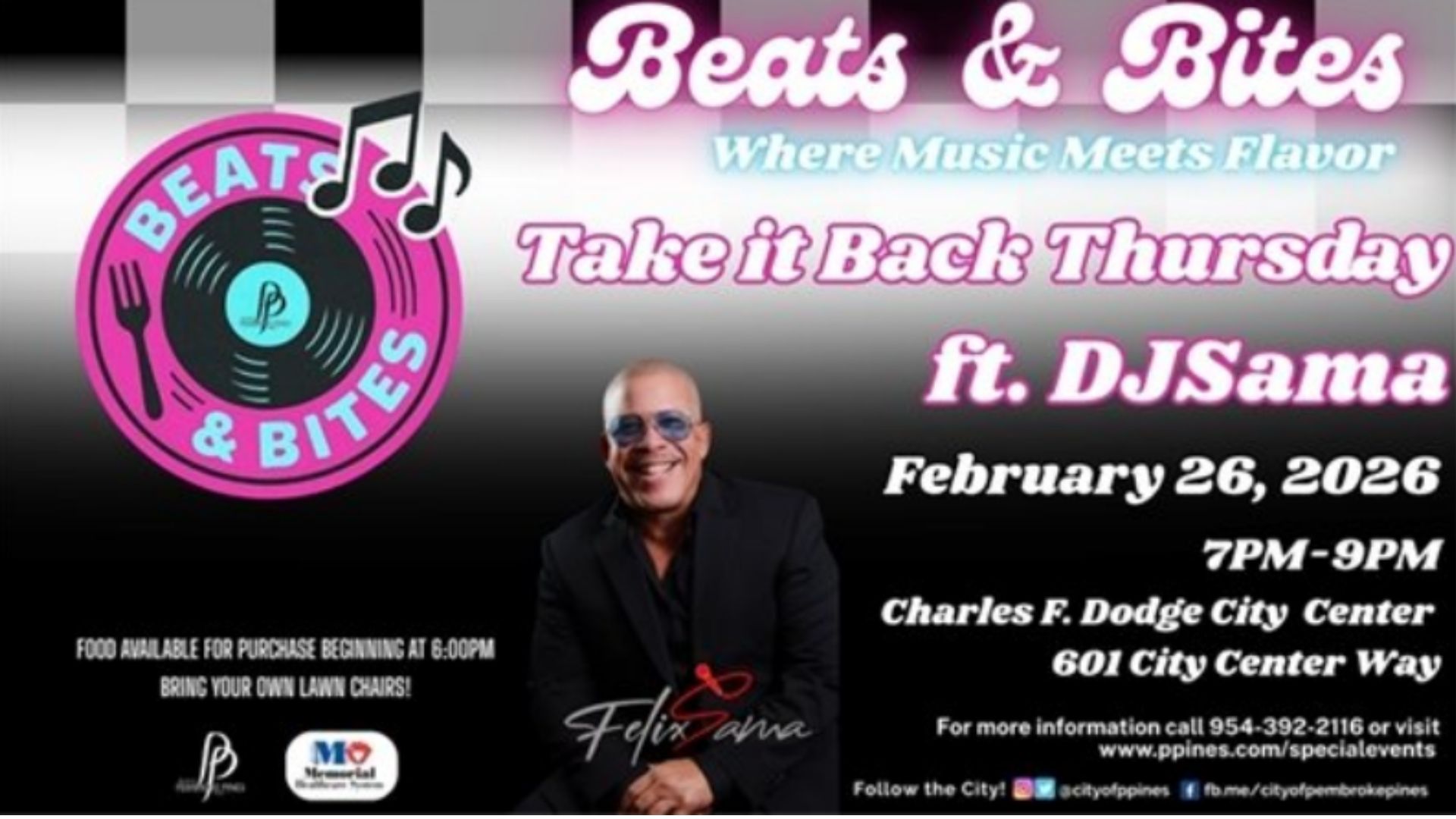 Whether you’re a longtime fan of classic hits or looking for a fun night out, Take it Back Thursday at Beats & Bites is shaping up to be a must-attend event in Pembroke Pines this February. With no cost to attend, free parking, and music designed to get everyone dancing, the city continues to offer residents a vibrant way to engage with culture and community.