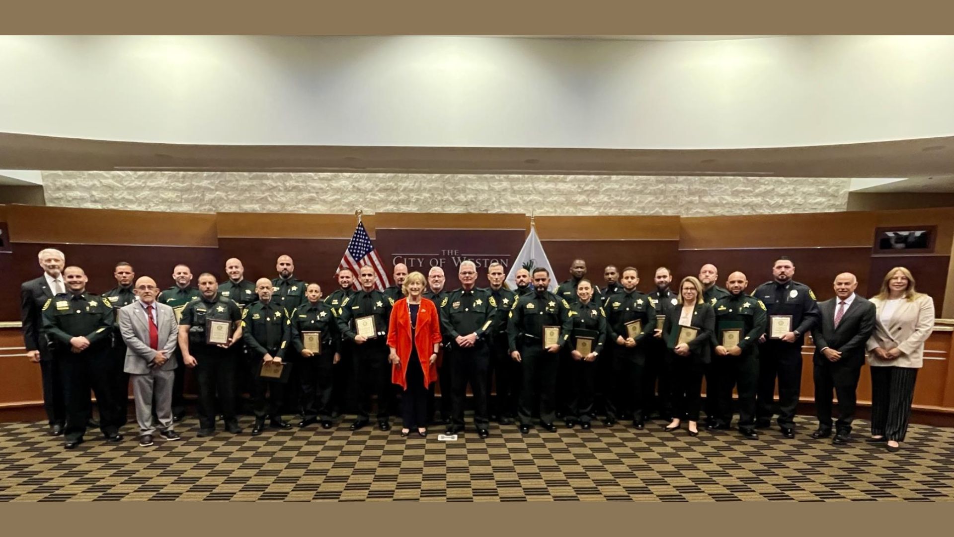 Among them are Sgt. Bobby O’Dor, Sgt. Steve Baretto, Sgt. Arik Levy, Sgt. Mike Weiner, Det. Arione Scott, Det. Ronald Fernandez, Detective Maria Ropain, Detective Michael Kravecz, Detective Nelson Prieto, Deputy Kelly Bober, and Crime Analyst Shana Gianino from the Weston District.
