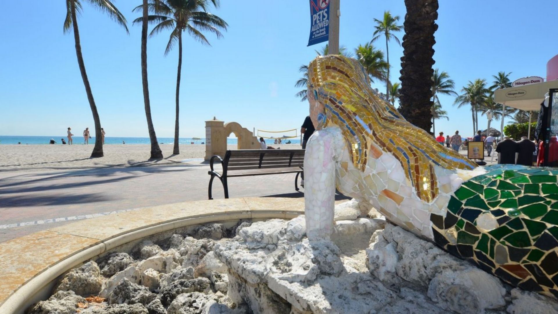 One of the city’s most mesmerizing sculptures is the Dolphin Sculpture at 3501 N Ocean Dr. This breathtaking fountain features three dolphins leaping gracefully through the air, creating a stunning visual that’s especially magical at sunrise. Another beachside masterpiece is the Mosaic Mermaid Sculpture on Indiana St. This shimmering mermaid, crafted with intricate mosaic details, has become a favorite among both locals and tourists who visit Hollywood Beach.