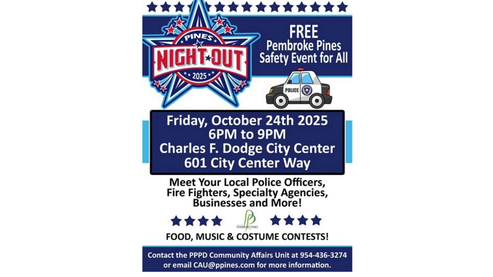 Those who would like more information about the evening can reach the Pembroke Pines Police Department Community Affairs Unit at 954-436-3274 or email [email protected].