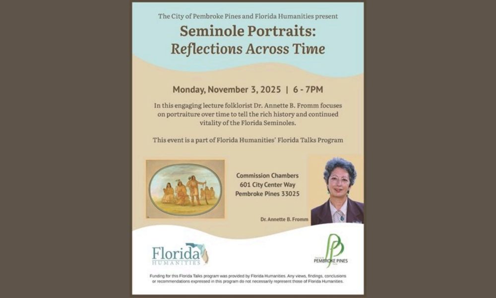 Pembroke Pines, Florida – In celebration of Native American Heritage Month, the City of Pembroke Pines invites residents to attend a special lecture titled Seminole Portraits:...