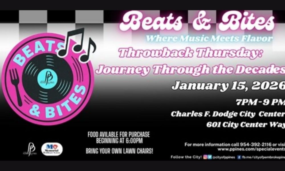 Pembroke Pines, Florida – Pembroke Pines is kicking off the new year with a lively evening of music, food, and nostalgia as the Beats & Bites...