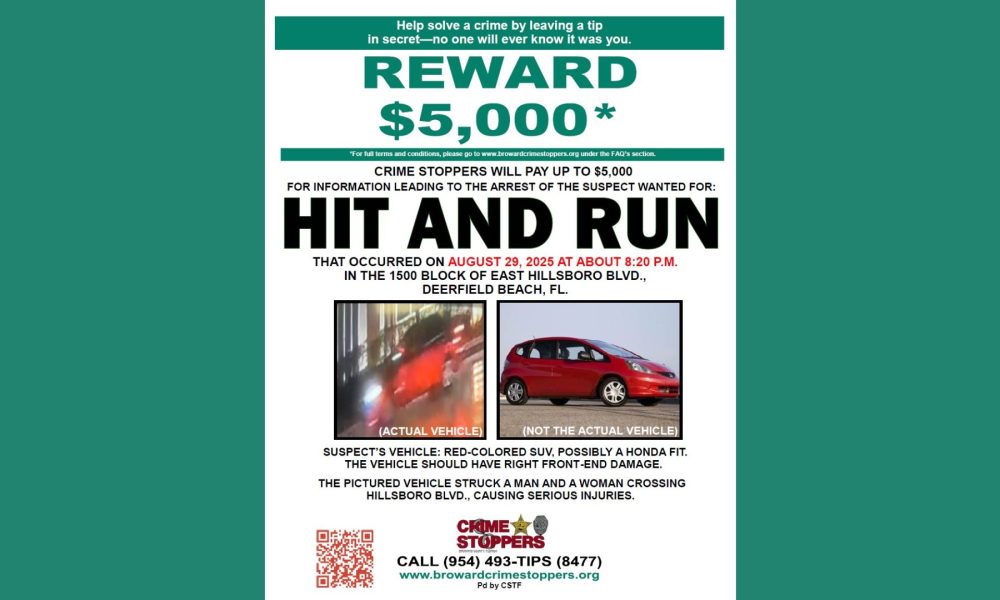 Deerfield Beach, Florida – Detectives with the Broward Sheriff’s Office Deerfield Beach Traffic Unit are actively investigating a hit-and-run crash that left two pedestrians seriously injured...