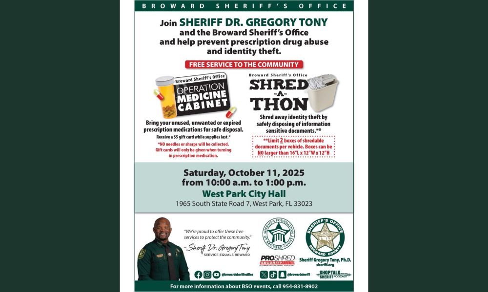 West Park, Florida – The Broward Sheriff’s Office (BSO) is hosting a free Operation Medicine Cabinet and Shred-A-Thon event this Saturday, offering West Park residents the...