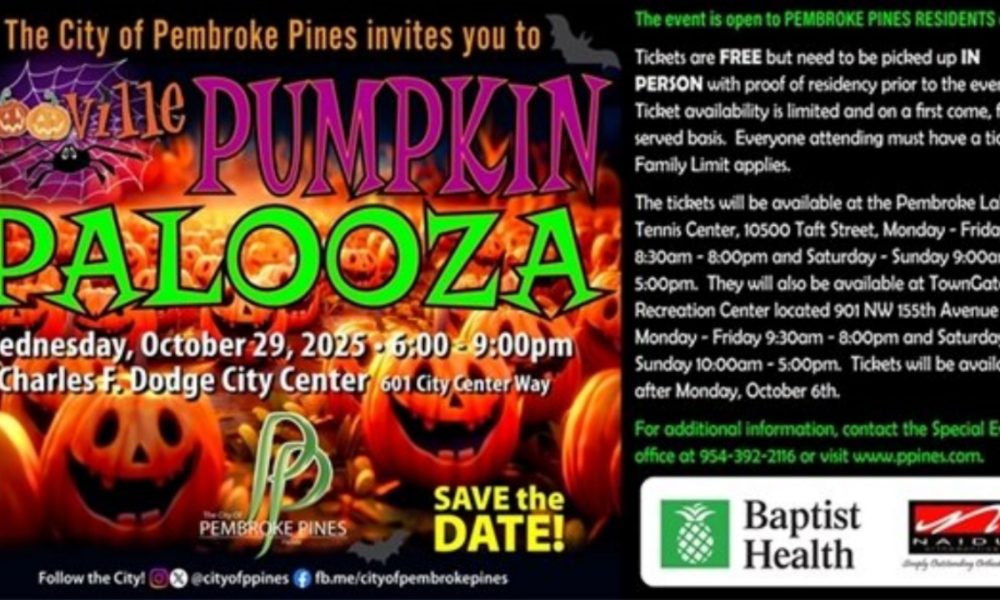 Pembroke Pines, Florida – The City of Pembroke Pines is preparing for a spooktacular evening as it hosts the annual Booville Pumpkin Palooza, exclusively for city...